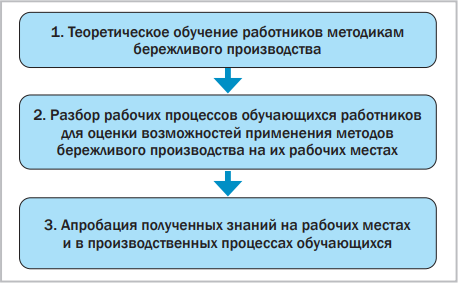 Данная концепция тесно связана и является одним из действенных направлений развития человеческого капитала предприятия. В процессе реализации национального проекта по повышению производительности труда работники предприятия проходят обучение по разным направлениям своей производственной деятельности, что делает выполнение их работы удобнее, быстрее и проще. Одна из самых главных задач, которая должна решаться на первых этапах запуска «бережливого» проекта, - это подбор правильных методов и технологий обучения, которые бы позволили удовлетворить потребности предприятия в повышении качества трудовых ресурсов и развитию человеческого капитала предприятия.